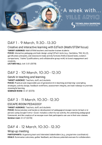 Ville Arvio é docente e formador na área da tecnologia educativa, com particular enfoque na pedagogia interativa, utilização de ferramentas digitais no ensino da Matemática/STEM e integração responsável de Inteligência Artificial em contextos educativos. Tem vasta experiência na formação de professores e no desenvolvimento de metodologias ativas, incluindo escape rooms pedagógicos e design de tarefas digitais.